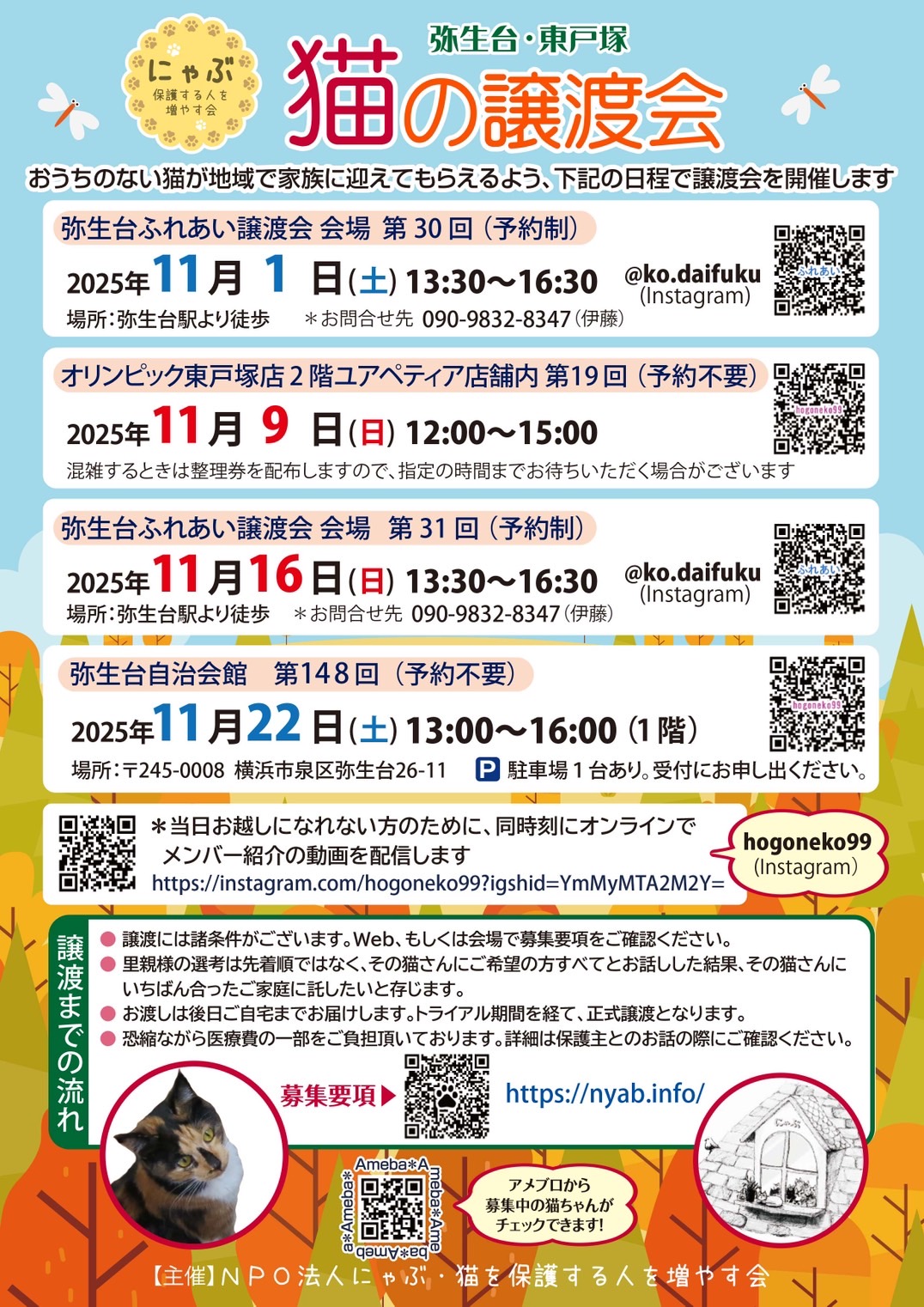 【やよい台】猫の譲渡会 11/16(日)・11/22(土)