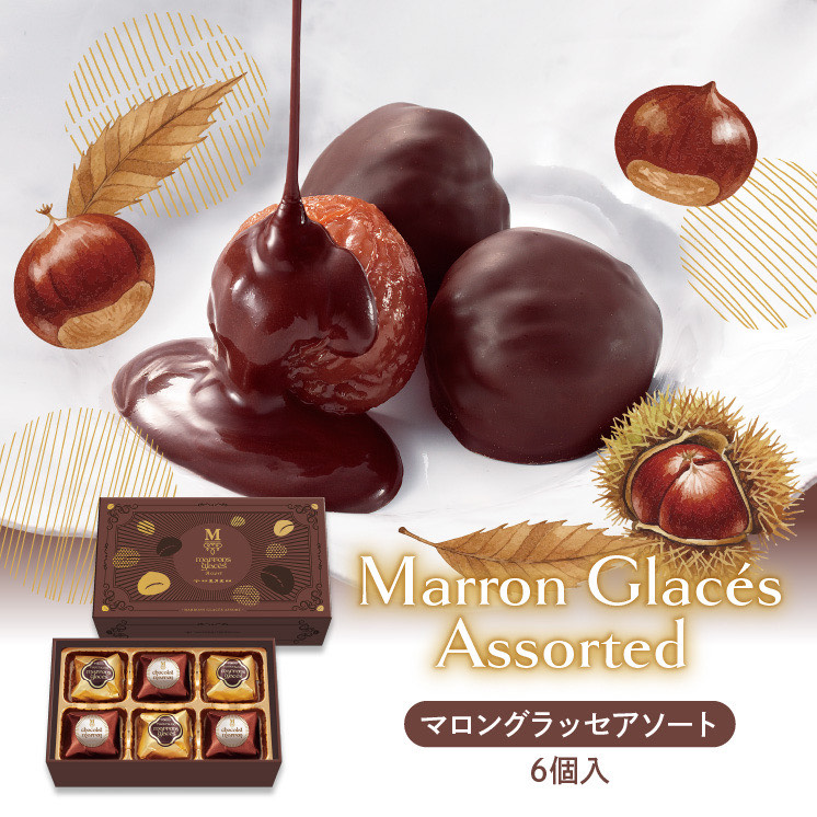 ほのかに洋酒が香る芳醇な味わいの「マロングラッセ」と、チョコレートで包んだ「ショコラマロン」を詰め合わせたアソート。