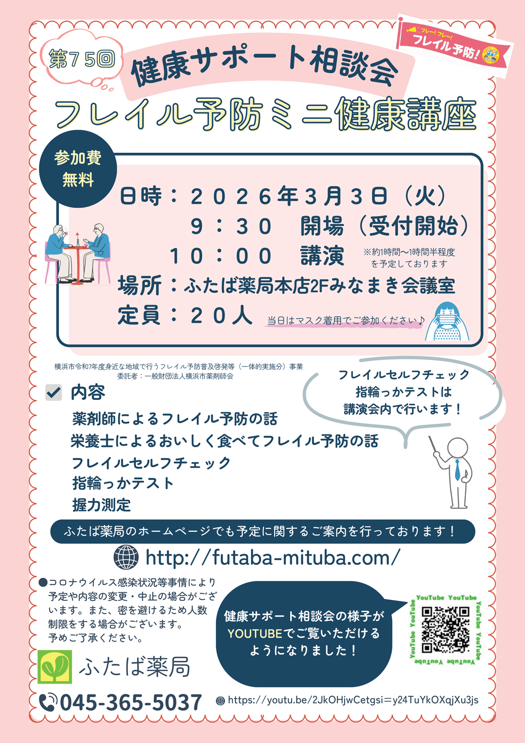 ふたば薬局:第75回健康サポート相談会(フレイル予防ミニ健康講座)